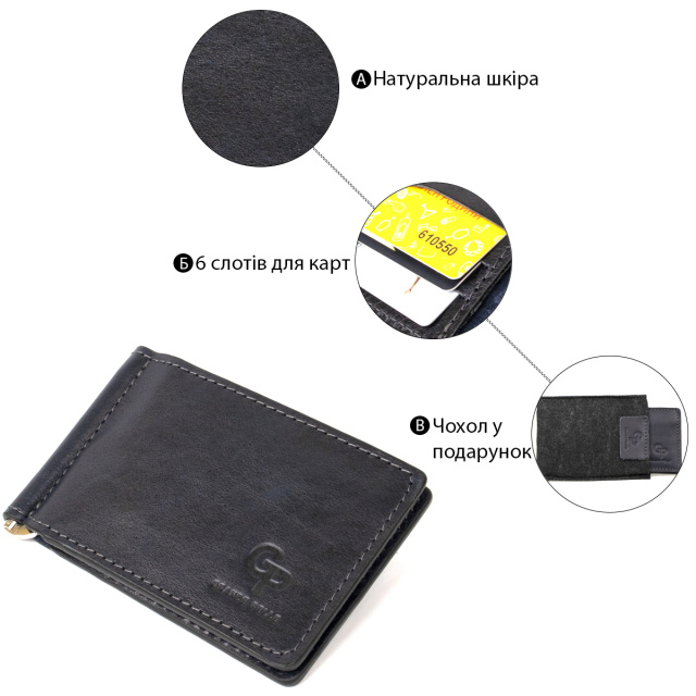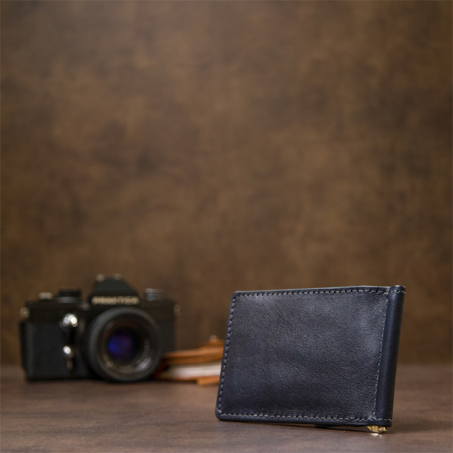 Практичный и стильный мужской зажим для поклонников лаконичных негромоздких вещей. Выполнен зажим из высококлассной натуральной кожи в глянцевой гладкой фактуре. Внутри изделия расположились удобные слоты для карт и сам зажим. Данный аксессуар уже давно стал незаменимым для многих мужчин, поэтому спешите себя порадовать данной покупкой.
