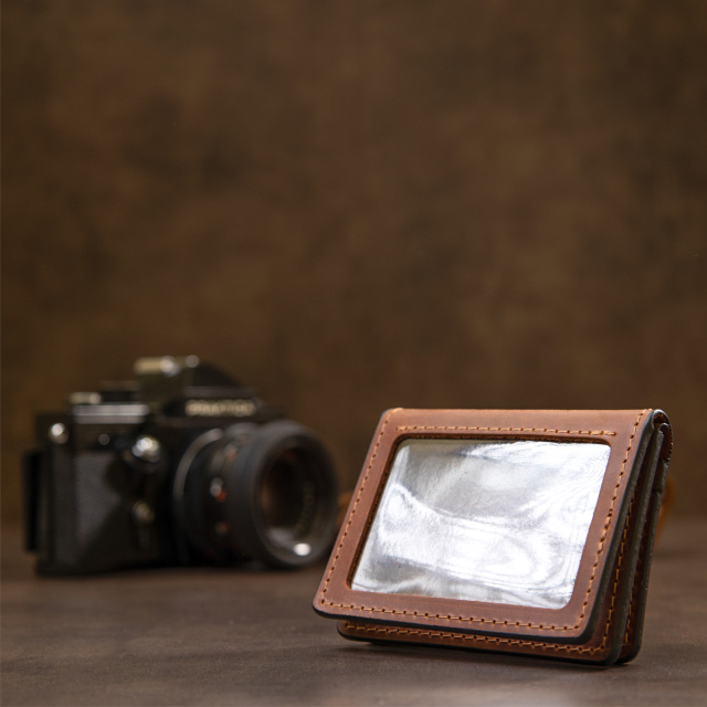 Компактная визитница из качественной натуральной кожи в благородном коричневом цвете. Имеет гладкую и мягкую винтажную фактуру. Внутри есть прозрачные слоты для карт и обычные. Упаковка представлена в виде фирменного чехла.