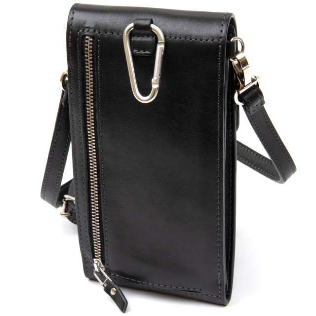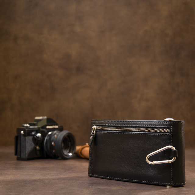 Интересный мужской кошелек-сумка, который можно носить через плечо, в руках или цеплять на пояс с помощью карабина. Выполнен из добротной натуральной кожи высокого качества. Внутри есть два просторных отделения на всю длину, слоты для карточек, а также внешний карман для мелочи. Такой кошелек станет хорошим необычным подарком для любого парня. Упакован он в специальный чехол.