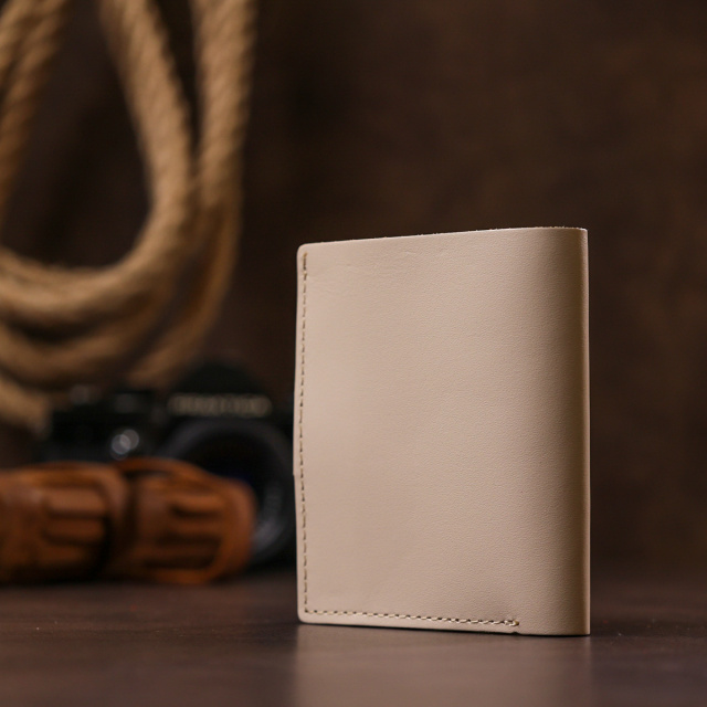 Отличное портмоне в лаконичном дизайне от украинского производителя. Материал – натуральная кожа с улучшенными показателями прочности и износостойкости. Внутри есть вместительно отделение для купюр, слоты для пластиковых карточек и небольшая монетница на кнопке. Закрывается данная модель на хлястик с кнопкой.