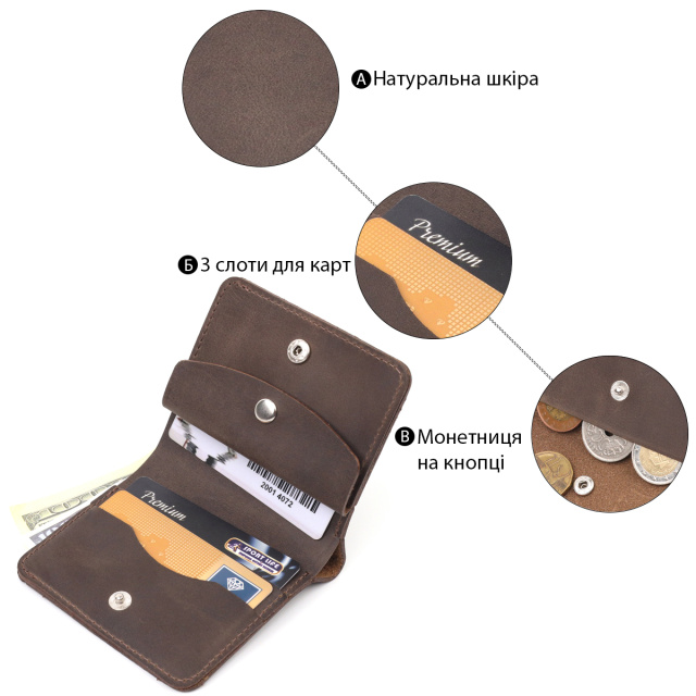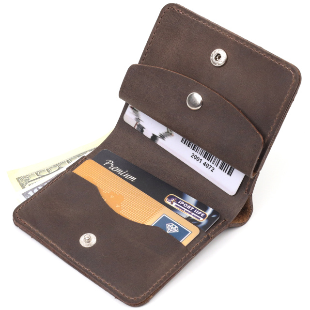 Классическое матовое портмоне в современном дизайне и красивом коричневом цвете. Изделие выполнено из натуральной кожи высокого качества и отличной устойчивости к износу. Портмоне имеет вместительное отделение для купюр, слоты для пластиковых карточек и монетницу. Закрывается аксессуар на кнопку. Если вы подыскиваете подарок для близкого человека, то данная модель отлично для этого подойдет.