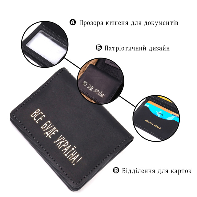 Патриотичная кожаная обложка на авто документы, с надписью “Все буде Україна” на лицевой стороне. Изделия из кожи всегда считались отличным подарком, не зависимо от пола и возраста. Изделие пошито с итальянской качественной кожи. По краям модель прошита черной строчкой в дизайн изделия. Изделие небольшого размера и с легкостью поместится в карман или маленькую сумку. В комплекте к изделию идет фирменный фетровый чехол.
