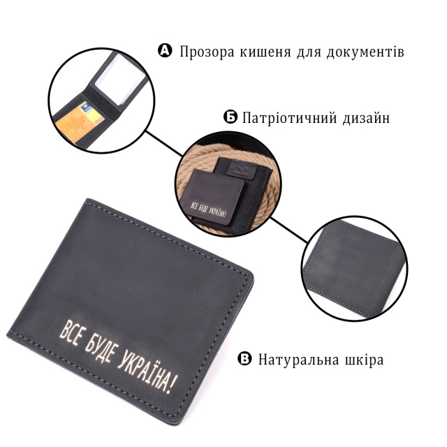 Практичная обложка для удостоверения учасника боевых действий, c патриотической надписью “Все буде Україна”. Изделие пошито из качественной винтажной кожи, с високими показателями износостойкости . Акссесуар надежно защитит ваши документы на долгое время. Кожаные изделия всегда считались отличным подарком для родных и близких на все праздники.