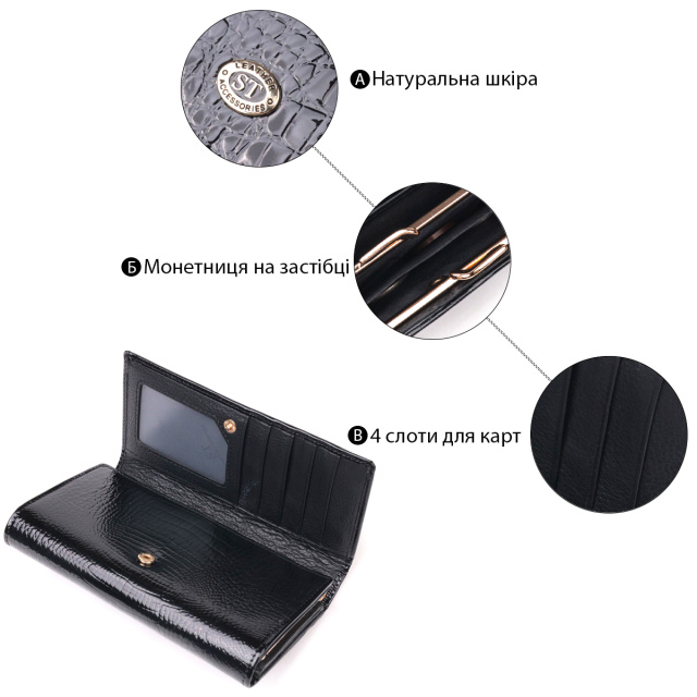 - три больших отделения для купюр по всей длине;