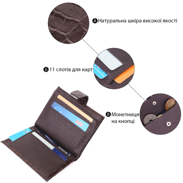 UA MarketКиївJANAВсе товарыТовари та послугиСумки мужскиеКошелькиМужские кошелькиКомпактный мужской кошелек из натуральной кожи с тиснением под крокодила KARYA 21386 Коричневый