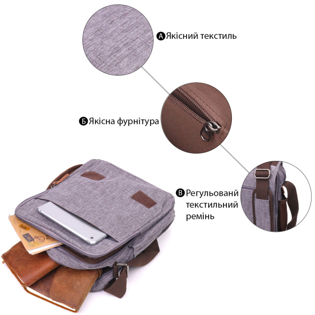 Мужская сумка через плечо из текстиля 21263 Vintage Серая