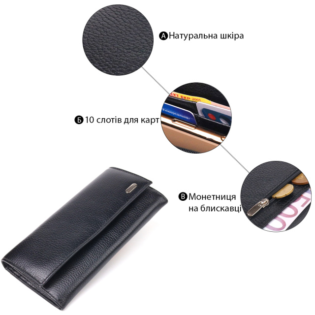 UA MarketКиївJANAВсе товарыТовари та послугиСумки мужскиеКошелькиЖенские кошелькиЖенский вместительный кошелек из натуральной зернистой кожи CANPELLINI 21625 Черный