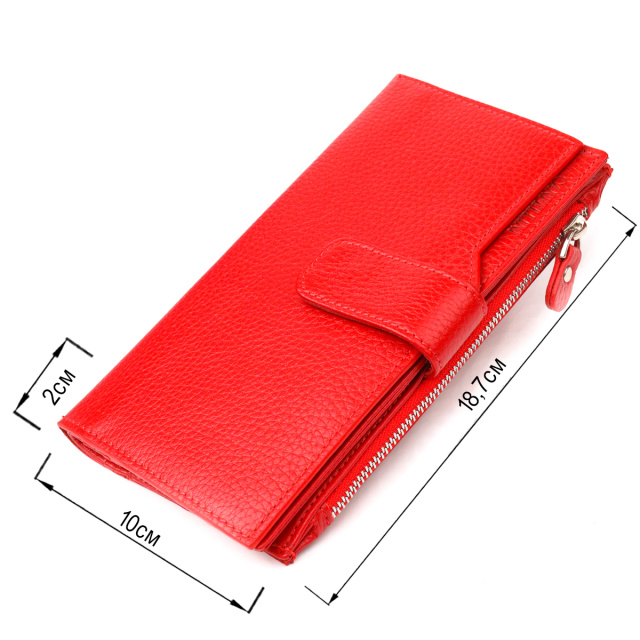 Стильный женский кошелек, из натуральной кожи. Аксессуар имеет шесть прилегающих карманов, в которые поместятся купюры всех номиналов, вместительную монетницу и двадцать карманов для карточек. Закрывается аксессуар хлястиком на кнопку. Если Вы хотите порадовать и себя и удивить близких, то непеременно покупайте кожаные аксессуары в нашем магазине, качество и цена Вас однозначно порадует.