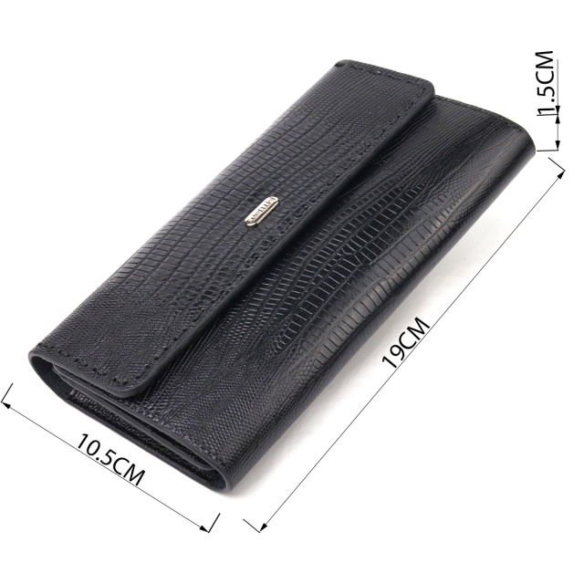 Интересный женский кошелек, из натуральной кожи, с тиснением под рептилию. Аксессуар имеет три отделения для купюр, монетницу, что закрывается на молнию, два скрытых кармана и двенадцать карманов для карточек. Закрывается аксессуар клапаном на магниты. Края клапана декорированы ровной прошитой строчкой в цвет изделия. Если Вы хотите порадовать и себя и удивить близких, то непеременно покупайте кожаные аксессуары в нашем магазине, качество и цена Вас однозначно порадует.