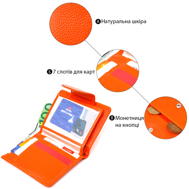 Сногсшибательный яркий кошелек компактного размера из натуральной кожи. Аксессуар имеет отделение для купюр с перегородкой, монетницу, что закрывается клапаном на кнопку, скрытый карман и семь отсеков для карточек, два из них под сеточкой. Закрывается аксессуар в два сложения хлястиком на кнопку. Качественный кожаный аксессуар всегда считался показателем вкуса и достатка, именно такие изделия представлени в нашем магазине, у нас каждый найдет что-то для себя.