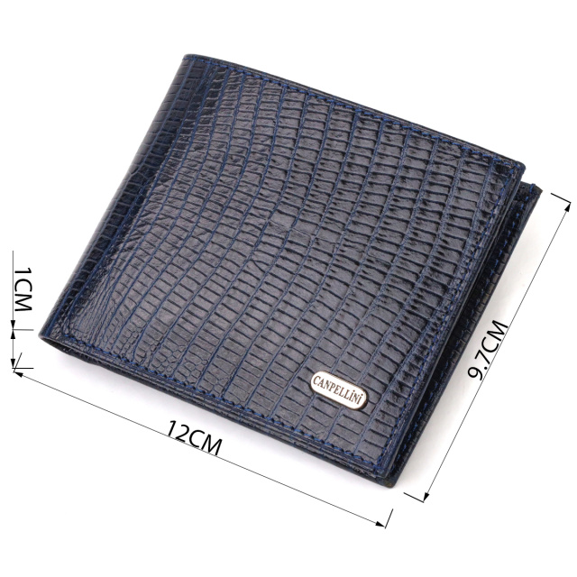 Фактурный стильный кошелек для мужчин без застежки горизонтального формата из натуральной кожи с тиснением CANPELLINI 21760 Синий