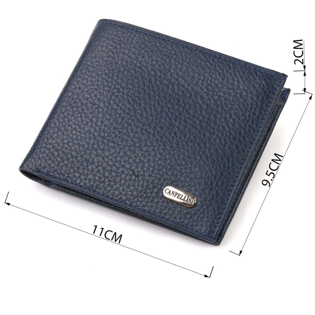 Модный мужской кошелек из натуральной зернистой кожи флотар. Аксессуар имеет одно основное отделение с тканевой перегородкой в которое помещаются купюры всех номиналов, шесть карманов для карточек, карман под сеточкой для пропуска, один скрытый карман и монетницу. Закрывается аксессуар пополам, без застежки. На лицевой стороне, в правом нижнем углу металлический логотип компании производителя. Приобретая кожаный аксессуар этой фирмы, себе или на подарок, будьте уверены, что он прослужит Вам не один год.