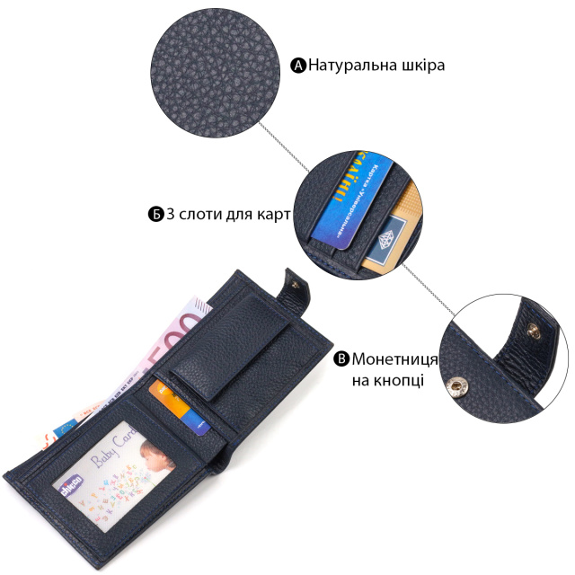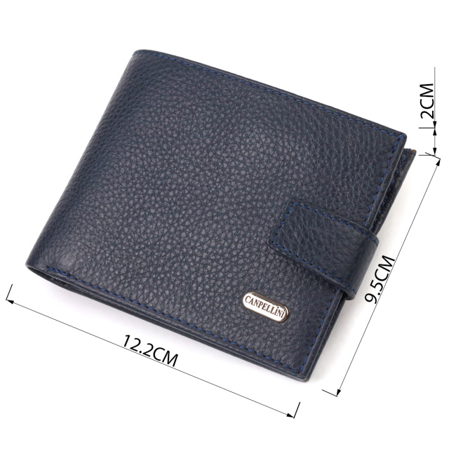 Превосходное мужское портмоне среднего размера из натуральной кожи. Аксессуар имеет основное отделение для купюр с карманом-перегородкой на молнии, три ячейки для карточек, два кармана под сеточкой, два прилегающих кармана и монетницу. Кошелек складывается пополам, закрывается хлястиком на кнопку. На лицевой стороне в правом нижнем углу, расположен металлический логотип компании производителя. Многофункциональный мужской бумажник из очень прочной кожи отличный выбор подарка для солидного мужчины.