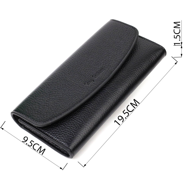 Превосходный женский кошелек из натуральной кожи флотар, для которой характерна прочность, износостойкость и зернистая фактура. Аксессуар состоит из одного широкого отделения для купюр, двенадцати ячеек для пластиковых карт, одного прилегающего кармана и монетницы на молнии. В изделии использована качественная фурнитура золотистого цвета. Закрывается кошелек клапаном на кнопку. Покупая этот кожаный кошелек, Вы не только приобретаете стильную вещь, но и получаете качественный аксессуар, который прослужит не один год.