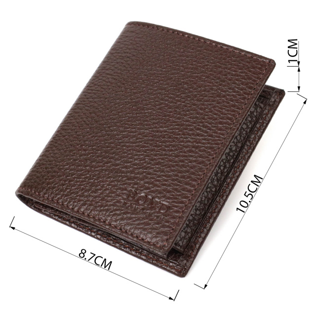 Практичный компактный бумажник для купюр, вертикального типа, выполнен из добротной натуральной кожи. В данный аксессуар отлично помещаются купюры всех номиналов. Изделие состоит из одного отделения для купюр, трех ячеек для кредиток, одного скрытого кармана, монетницы и двух отделений под сеткой под документы. Закрывается кошелек пополам, без застежки. Изделия из натуральной кожи всегда будут отличным подарком для близкого человека.