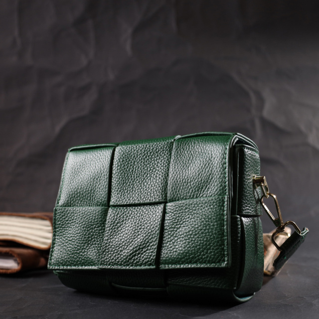 Модная женская сумка с переплетом и карманом-косметичкой внутри. Изделие пошито из качественной натуральной мягкой кожи, которая долго носится и не теряет свой первоначальный вид. Аксессуар состоит из одного отделения в котором пристегивается карман косметичка на молнии. Носить сумку можно под рукой, на плече и через плечо, для этого имеется текстильный съемный ремень. В изделии использована качественная фурнитура цвета желтого золота. Универсальный вариант сумки как на вечер так и в качестве сумочки на каждый день.