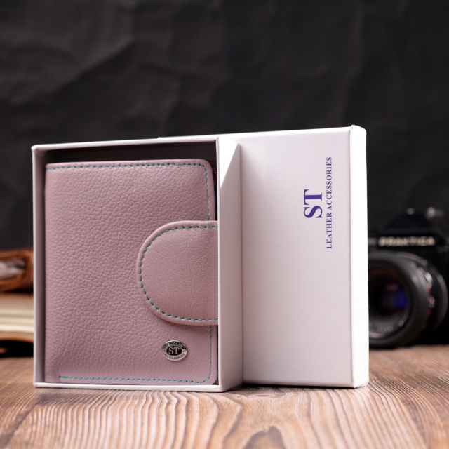 Интересное вертикальное портмоне в два сложения удобного размера из натуральной кожи высочайшего качества. Кошелек бежево-розового цвета снаружи и разноцветный внутри, что очень стильно и современно. Кожаное портмоне очень практичное и служит достаточно долго. Аксессуар состоит из основного отделения с кожаной перегородкой для купюр, кармана на молнии через всю длину, монетницы, девяти ячеек для карт, прозрачного окошка для пропуска и трех скрытых карманов. Портмоне дополнено надежной фурнитурой и прошито по краю ровной строчкой бирюзового цвета. Укомплектован кошелек в фирменную картонную коробку белого цвета. Изделие станет идеальным подарком для девушки любого возраста.