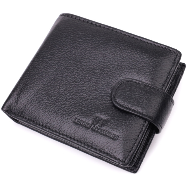 Кошелек для мужчин удобного размера из натуральной кожи ST Leather 22461 Черный
