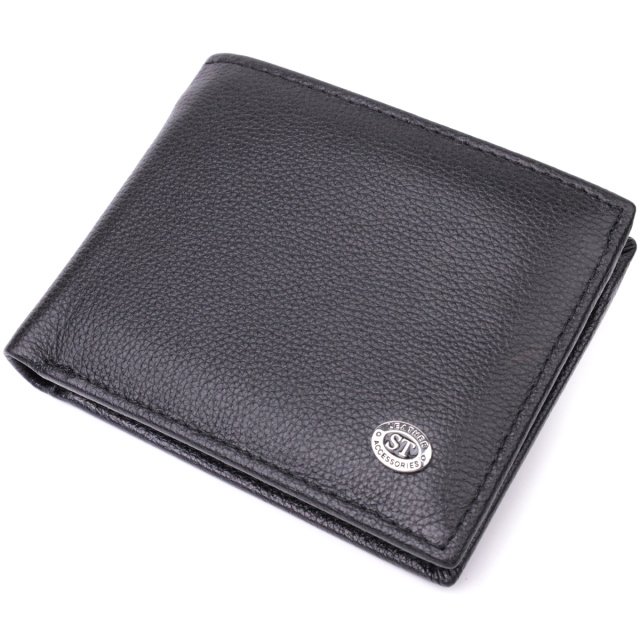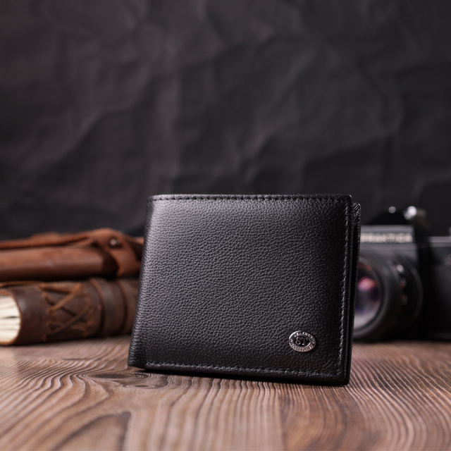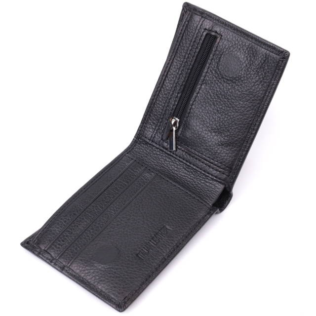 Очень стильный бумажник компактного размера для деловых мужчин, которые ценят качество и практичность. Аксессуар вместительный из натуральной кожи, он состоит из двух вместительных отделений для купюр, кармана на молнии, четырех ячеек для карт, двух скрытых карманов и кармана для монет. Портмоне дополнено надежной фурнитурой и крепкой подкладкой. На лицевой стороне, в правом нижнем углу расположен металлический логотип производителя. Упакован кошелек в фирменную картонную коробку белого цвета.
