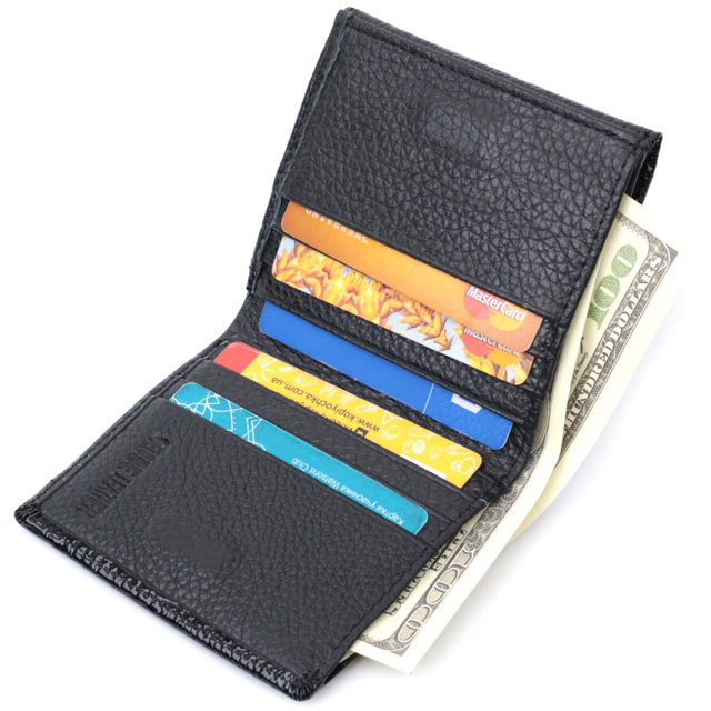 Материал: натуральная кожа;  Цвет: черный;  Размеры (ШхВхГ): 10х9х1,5;  Страна производства: Китай. Описание:  - два
