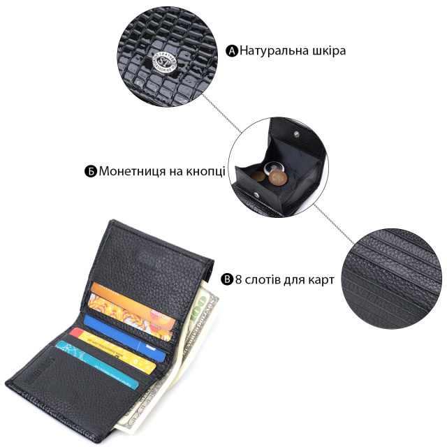 Женский компактный кошелек из натуральной лакированной кожи ST Leather 22688 Черный