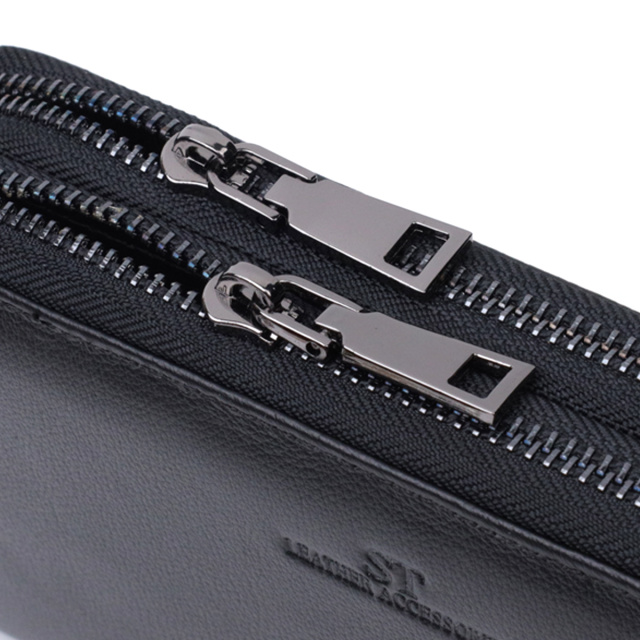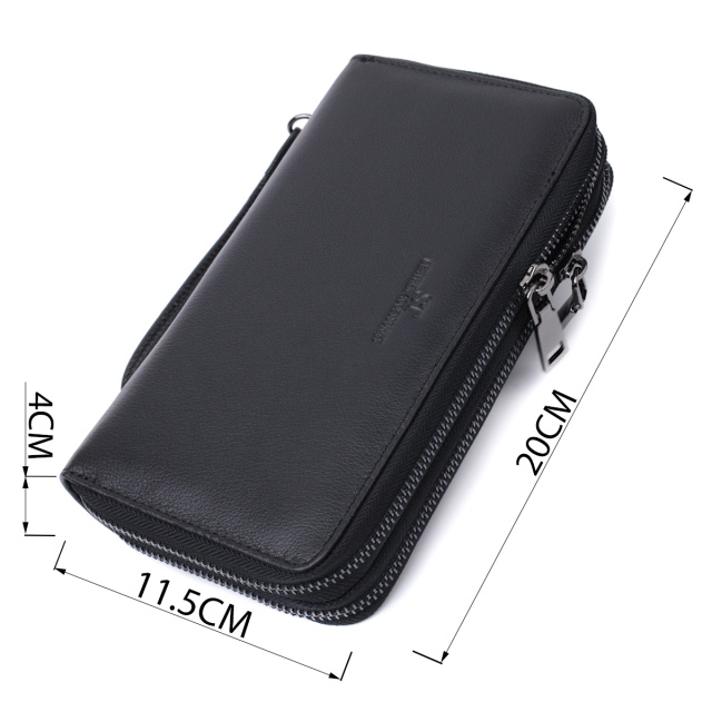 Удобный мужской клатч в классическом стиле из натуральной кожи. Для максимальной удобности кошелек разделен на два больших отделения, что закрываются на молнии. Аксессуар имеет все необходимое, чтобы стать Вам незаменимым помощником в повседневной жизни. Вы с легкостью поместите в него бумажные купюры, монеты, документы, карточки и даже смартфон. На лицевой стороне, вверху посередине расположено тиснение с логотипом производителя, что является залогом качества изделия. Упакован аксессуар в белую плотную картонную коробку с фирменным логотипом.