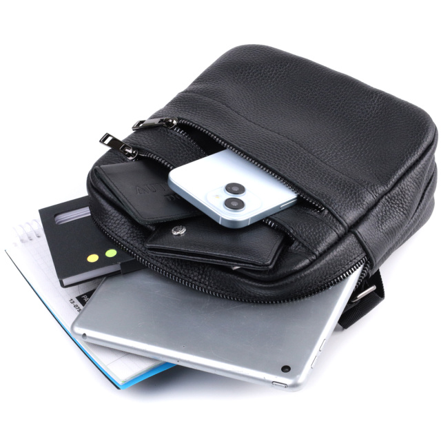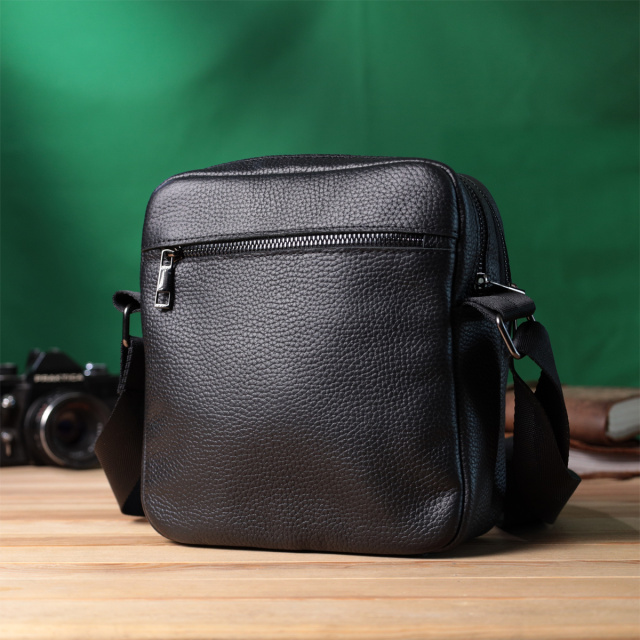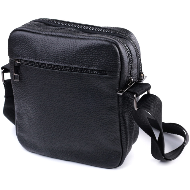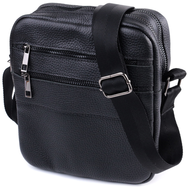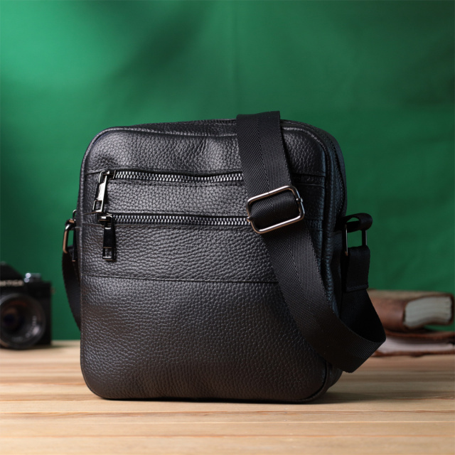 Удобная мужская сумка мессенджер, с большим количеством карманов, в которую поместятся все ваши необходимые вещи и даже мини айпад. Фурнитура металлического цвета - стойкая не меняет свой цвет в процессе носки. Великолепная мужская сумка вертикального формата, изготовленная из натуральной зернистой кожи черного цвета. Аксессуар отлично сочетается со всеми стилями в одежде и может стать отличным подарком на любой праздник.