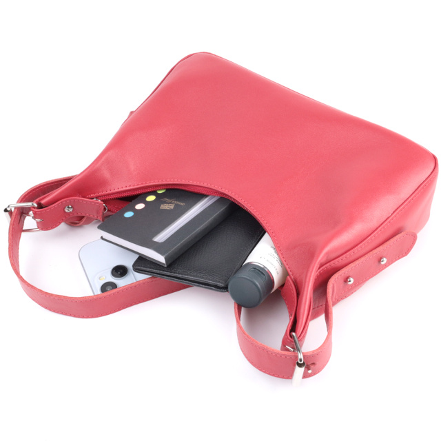 Яркая женская сумка для тех, кто любит красивый дизайн без лишних деталей. Такая сумка в модном мире имеет название - сумка багет. Это небольшая сумка с коротким ремнем, которую удобно носить под рукой, она обрела свою популярность благодаря своему универсальному дизайну и необычной форме. Цвет изделия – модный красный, фактура – гладкая с глянцевым блеском. Материал исполнения – натуральная мягкая кожа с высокими показателями качества. Отличный вариант сумки на каждый день, ведь она не только привлекательна снаружи, но и оснащена разумной системой внутренних отделений, что позволит продуманно и органично организовать пространство внутри. Модель очень стильна и элегантна, изготовлена из качественных материалов и хорошо держит форму.