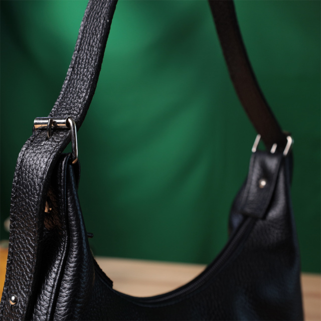 Сумка багет с регулируемым ремнем из зернистой натуральной кожи Shvigel 22833 Черная