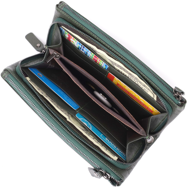 Удобный кошелек-клатч который отличается своей вместительностью. В данную модель легко поместится ваш смартфон. Таким образом модель способна заменить вечернюю сумочку. Носить же клатч можно с помощью кожаного ремешка на запястье. Два вместительных кармана помогут удобно разложить вам деньги, также клатч имеет достаточно слотов для кредиток. Преимуществом данного цвета является то, что он не привязывает вас к определенной цветовой палитре в гардеробе. Он подходит под все. Сам клатч мягкий и приятный на ощупь. На лицевой стороне по центру — тисненый логотип производителя, являющийся знаком качества и оригинальности изделия. Внутри клатч сделан из натуральной кожи и плотного текстиля. В комплекте идет фирменная коробка с логотипом бренда. Кожаный клатч станет лучшим подарком для близкого человека.