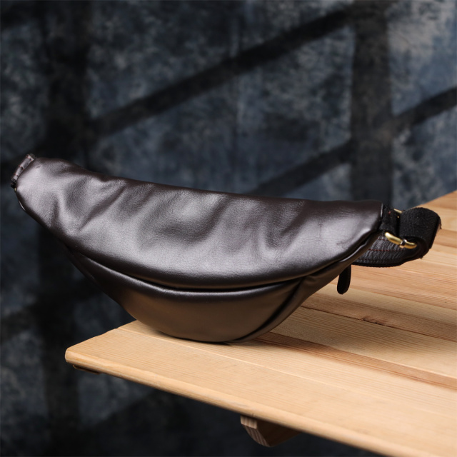 Интересная сумка-бананка для мужчин от украинского бренда Shvigel — удачное сочетание практичности, стиля и индивидуальности. Выполненная из прочной натуральной гладкой кожи в коричневом цвете, который придаёт аксессуару свежесть и благородство, подчёркивая вашу оригинальность и уверенность в себе.