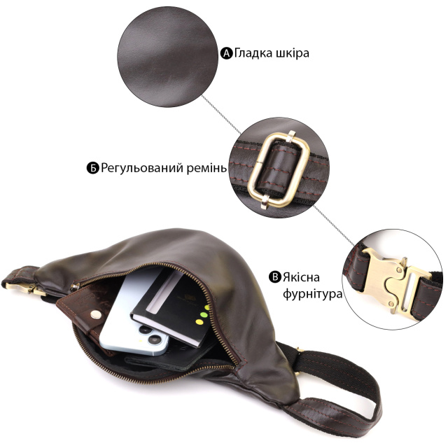 Сумка бананка отменного качества из гладкой натуральной кожи Shvigel 23144 Коричневый
