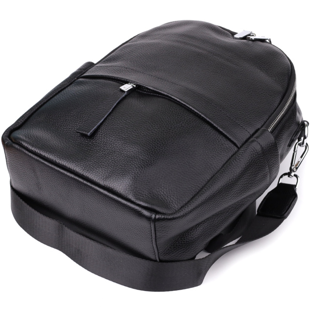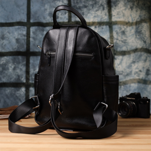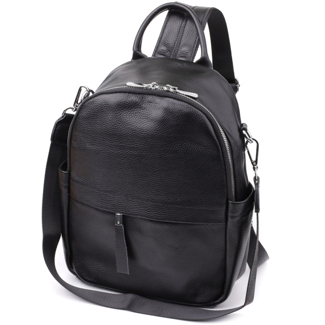 Стильный женский кожаный рюкзак выполнен в функциональном и современном дизайне, идеально подходящем для повседневного использования. Он оснащён одним основным отделением на молнии, внутри которого предусмотрены два кармана на молниях и один открытого типа для удобного хранения необходимых вещей.