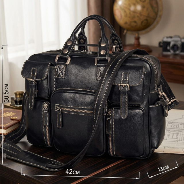 Многофункциональная кожаная сумка — практичный аксессуар для работы, поездок, документов и повседневного использования. Модель сочетает в себе вместительность, продуманную организацию пространства и солидный внешний вид, поэтому хорошо подходит для делового ритма, города и дороги.