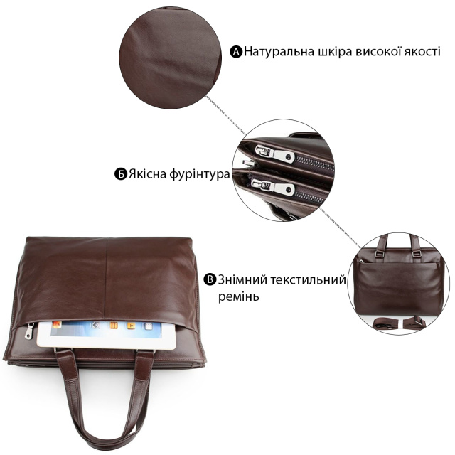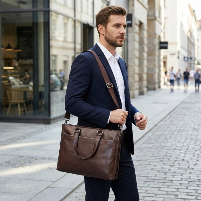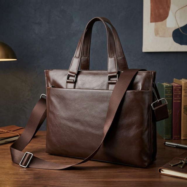 Это удачный выбор для тех, кто ищет стильную, вместительную и функциональную кожаную мужскую сумку для работы, документов и города.