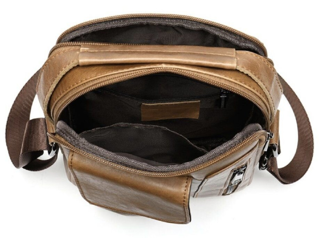 Солидная сумка для стильных мужчин. По краям прошита рыжей нитью. Внутри аксессуара коричневая подкладка. Модель удобно носится на плече. Аксессуар прослужит вам очень долго. Идеальный вариант для подарка близкому человеку. Сумка упакована в тканевой мешок от пыли и износа.