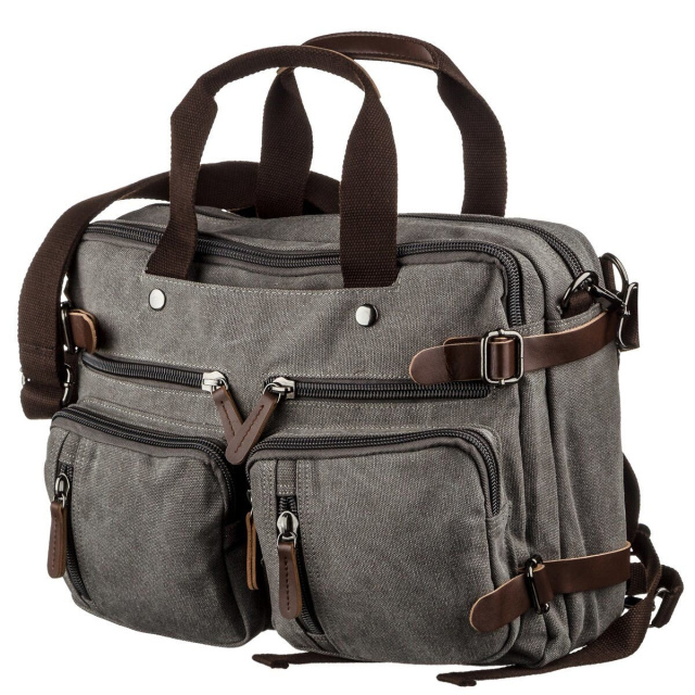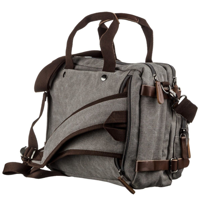 Сумка-трансформер удобнейший аксессуар, который сочетает в себе 2 вещи. Сумка не тяжелая. Выполнено изделие из качественного и плотного текстиля. Сумка легко превращается в рюкзак достаточно всего лишь достать лямки сзади из-под молнии. Сумка достаточно вместительная и прекрасно подойдет в дорогу. В изделие поместится ноутбук диагональю 15 дюймов и другие ваши необходимые вещи. Если вы не хотите переплачивать за натуральную кожу такая модель будет неплохой альтернативой.