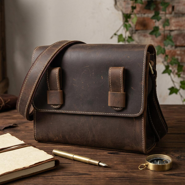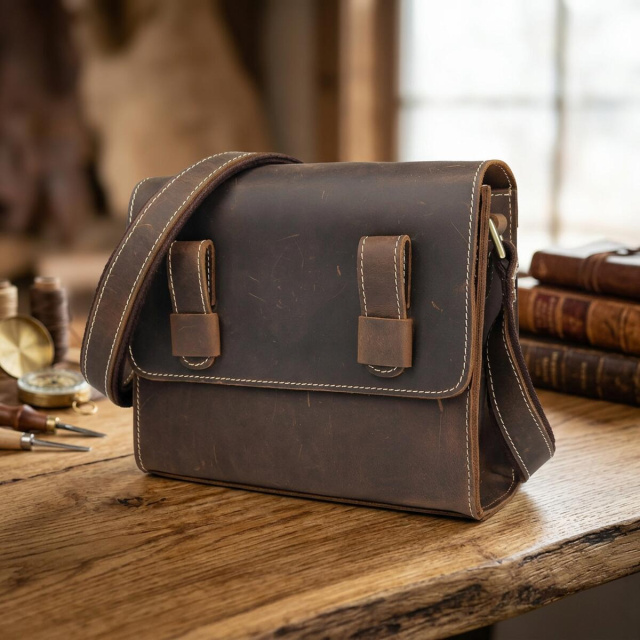 Кожаная мужская сумка почтальонка через плечо — практичный аксессуар для города, документов, повседневных дел и поездок. Модель сочетает в себе компактный формат, выразительный винтажный стиль и удобную организацию пространства, поэтому хорошо подходит для ежедневного использования.