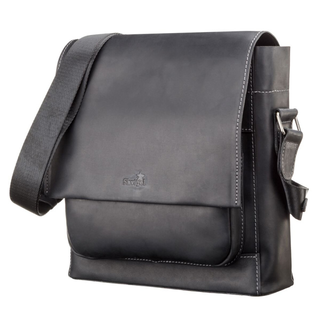 Интересная мужская сумка, из натуральной винтажной кожи, характерными признаками которой, являются: неоднородность окраса и потертости, которые придают изделию изысканного, индивидуального вида, с клапаном на магнитах, формата А4. Размер очень удобный. Особенность дизайна позволит мужчине носить с собой личные вещи, документы, много нужных мелочей. Внутри сумка разделена перегородкой на молнии на два отделения. В одном карман для телефона, визиток, отделения для ручек и держатель для ключей, карман на змейке. В другом отделение для планшета с уплотненной перегородкой.
