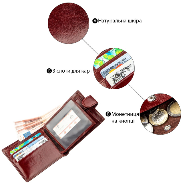 - мужской кошелек из натуральной кожи на кнопке;