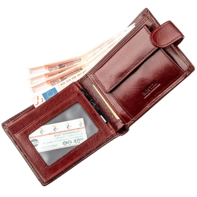 Компактный мужской кошелек из натуральной кожи, имеет красивый, но не вызывающий красно-коричневый цвет. Подойдет для тех, кто носит с собой всегда только самое нужное, при этом Вы с удивлением заметите, что в кошелек поместится очень много необходимых Вам вещей. Это и деньги, и карточки, и конечно же документы. Такой кошелек имеет элегантный дизайн и нежную на ощупь поверхность кожи, но при этом она очень прочная и надежная. Дизайн такого кошелька предусматривает возможность носить его как мужчине, так и женщине. Упакован кошелек в прочную картонную коробку, поэтому он прекрасно подойдет на подарок!