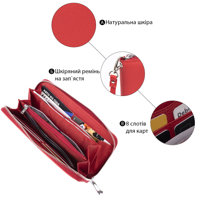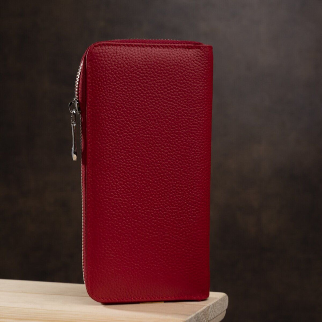 Данная модель создана для любителей компактных, но очень вместительных бумажников. Для банкнот есть три больших отделений, благодаря которым можно удобно разделить купюры, а также закрывающийся отсек на молнии. С другой стороны, имеется карман на защелке, предназначенный для монет. Особенно понравится всем красивый красный цвет и удобное внутреннее расположение.