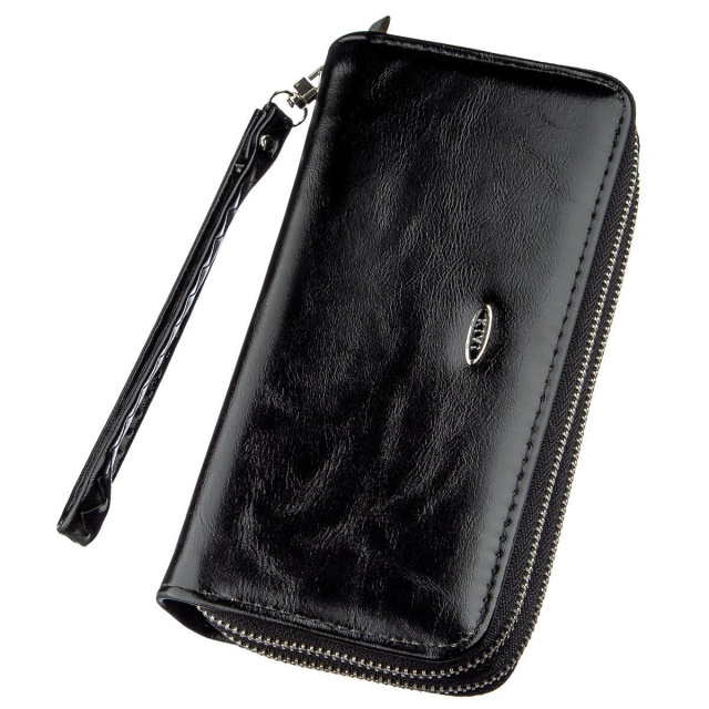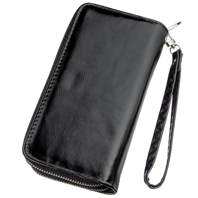 Классический и доступный женский кошелек. Такая модель понравится тем девушка, которые носят с собой много карточек и не хотят выкладывать их из кошелька. Вместительный объем кошелька не принесет вам неудобства в использовании. Классический черный цвет и дизайн будут сочетаться с любой одеждой. Кошелек дополнен качественной фурнитурой и выполнен из качественного кожзаменителя.