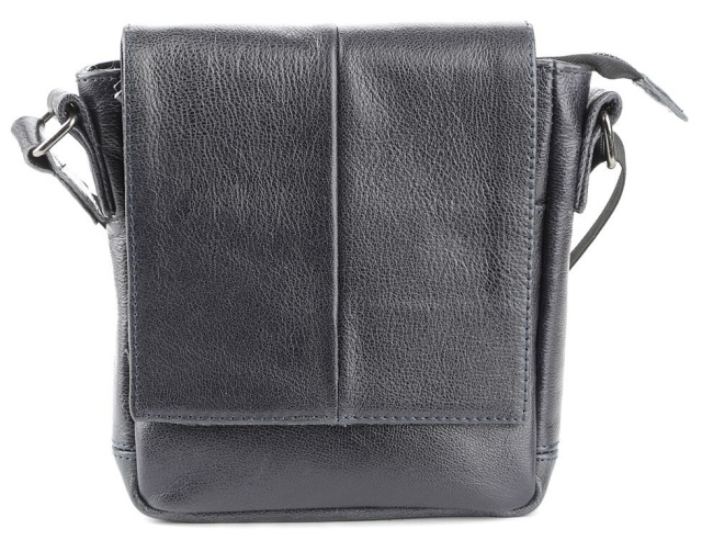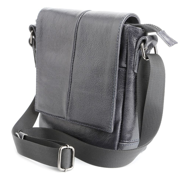 Высококачественная мужская кожаная сумка. Аксессуар можно носить через плечо при помощи регулируемого, текстильного плечевого ремня черного цвета. Изделие закрывается при помощи кожаного клапана на двух скрытых магнитах и молнией. Под клапаном расположен накладной карман. На задней внешней стороне находится отделение на молнии. Цвет фурнитуры: темное серебро. Кожаная сумка станет превосходным подарком мужчине к любому празднику.