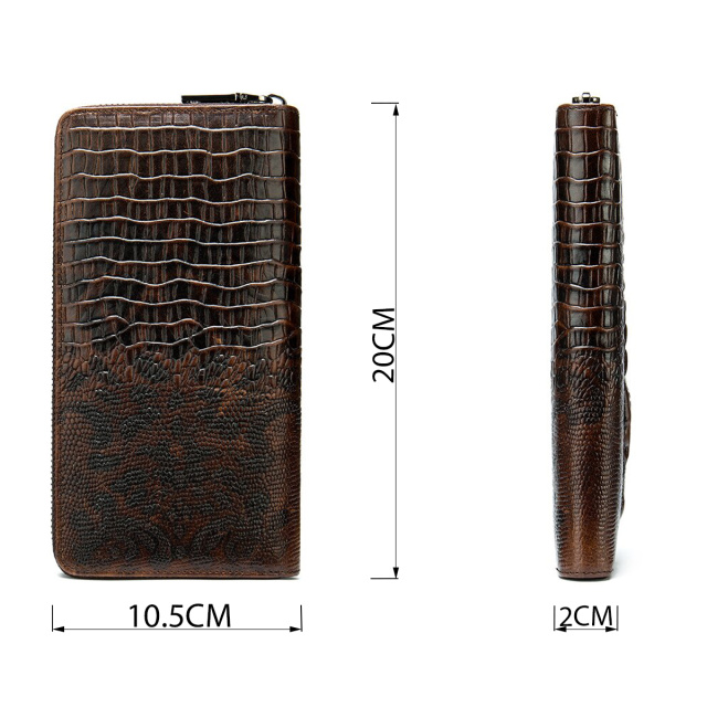 Кожаный мужской клатч с тиснением под экзотику и силуэтом каймана. Изделие очень удобно лежит в руке. Модель дополнена качественной фурнитурой. В клатч с легкостью помещаются купюры любого размера, а также ваш смартфон и паспорт. Клатч достаточно функциональный. Аксессуар очень стильно и солидно выглядит и идеально дополнит любой ваш образ. Такой аксессуар станет прекрасным подарком для любого мужчины.