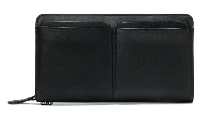 - на лицевой стороне 2 открытых кармана со вкладышами для кредиток (по 3 слота и один прозрачный).