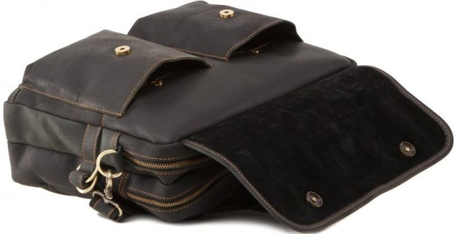 С внешней лицевой стороны находятся два накладных кармана под клапаном, на магнитах, а также карман на молнии в самом клапане. С тыльной стороны размещается вместительный карман на молнии. Подкладка: прочный текстиль.