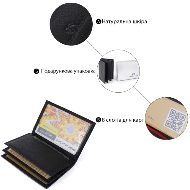 8 ячеек под пластиковые карточки (2 из них на лицевой и тыльной стороне);