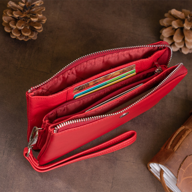 Яркий клатч для настоящих девушек. Изделие очень вместительное и универсальное. В такой клатч поместится телефон и документы. Модель состоит из двух больших отделений для купюр и отделения-перегородки на молнии. Достаточно вместительный функционал клатча делают его особенно популярным и удобным. Плюсом приобретения данной модели станет то, что она готова заменить вам по своей вместительность вечернюю сумочку. При этом клатч не занимаем много места и носится на запястье при помощи соответствующего ремешка. Клатч упакован в фирменную коробку и станет лучшим подарком для любой девушки.