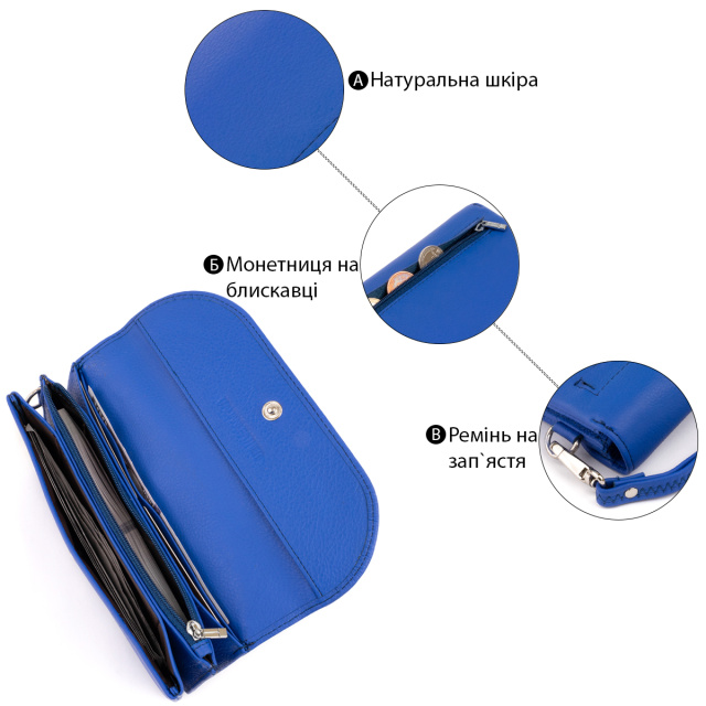 Материал: натуральная кожа; Цвет: синий; Размеры (ШхВхГ): 19х9,5х2,5. Страна производства: Китай. Особенности: три основных отделения...